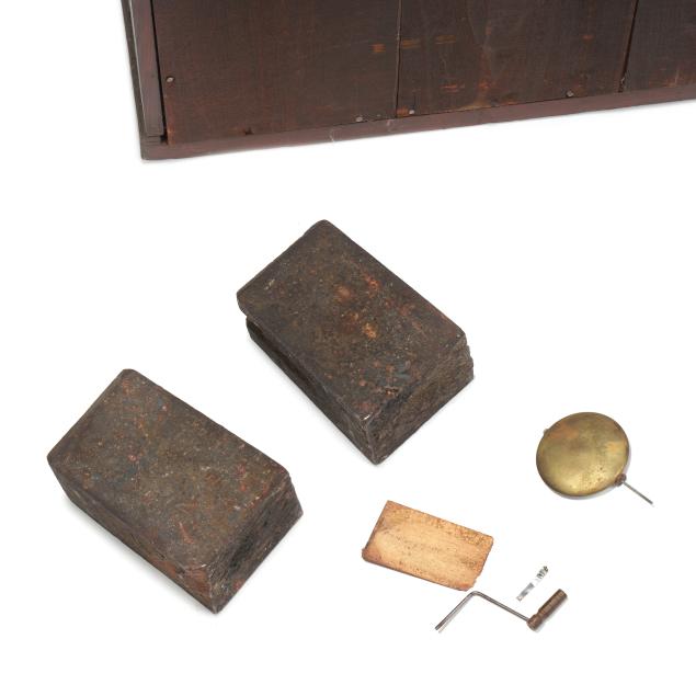 Areas of surface wear and chipping to the veneers and corners; clock interior with receipt for service records. Please see Terms and Conditions of Sale: Clocks and Watches.