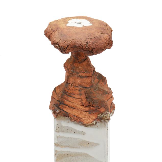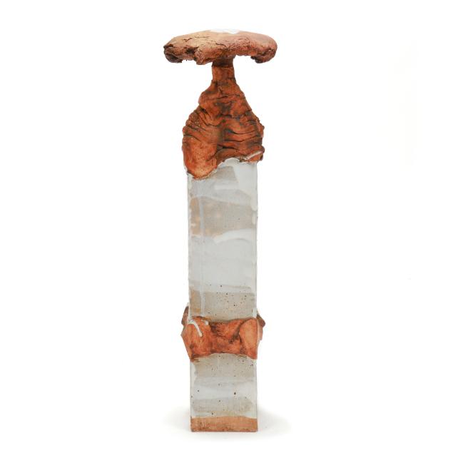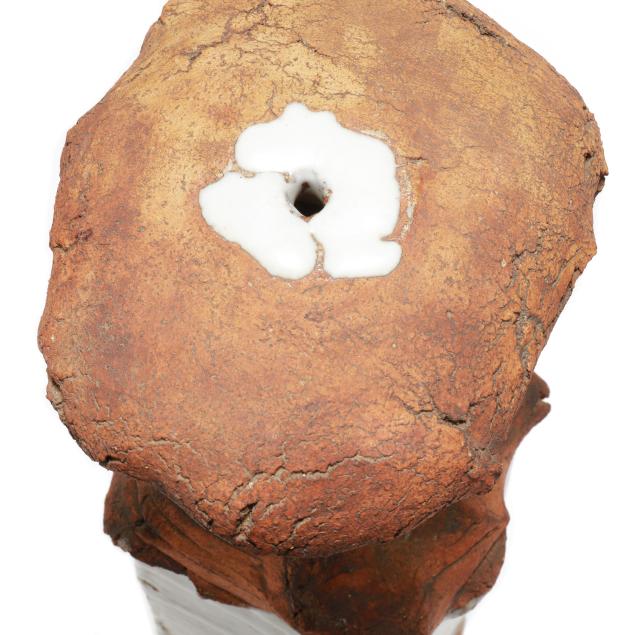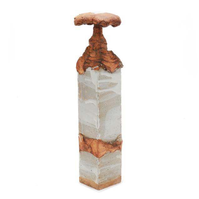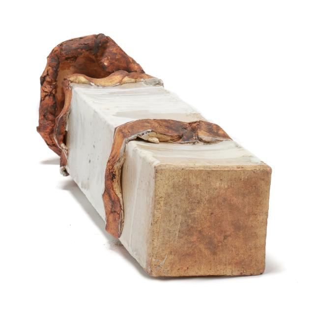 Contemporary slab and hand-built stoneware with white glazes, unsigned.