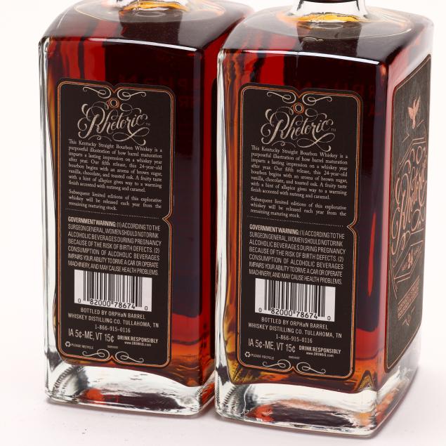 NV, Orphan Barrel Rhetoric Kentucky Straight Bourbon Whiskey, Aged 24 Years, Tullahoma, TN, 45.4%, limited 2018 release, bottle nos. 16948 & 26222, 1ts, 1htms, 2 sealed (2 750 ml)