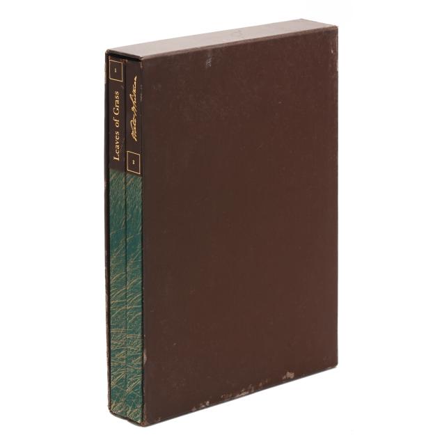 Walt Whitman; Edward Weston [photographs]. LEAVES OF GRASS. New York: The Limited Editions Club, 1942. (2) volumes (complete). Limited edition; no. 1247 of an unspecified number of copies. Signed by Edward Weston in green ink on the colophon. Photographically illustrated green paper-covered boards with gilt-stamped leather spine labels; in orignal slipcase; text printed on pale green paper. Slim 4tos; xxix, [3], 123, [1]pp.; [5], 124-264pp. plus index and colophon. Introduction by Mark Van Doren.