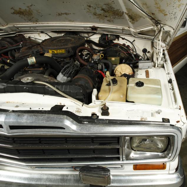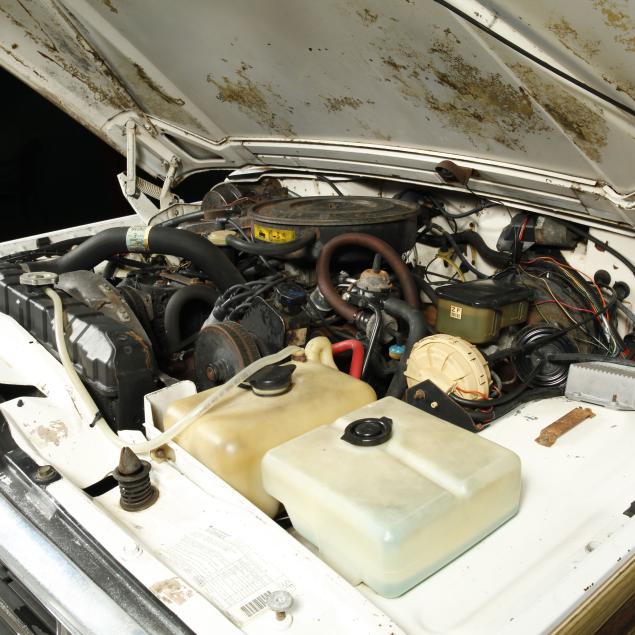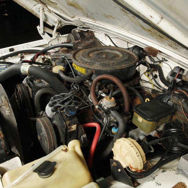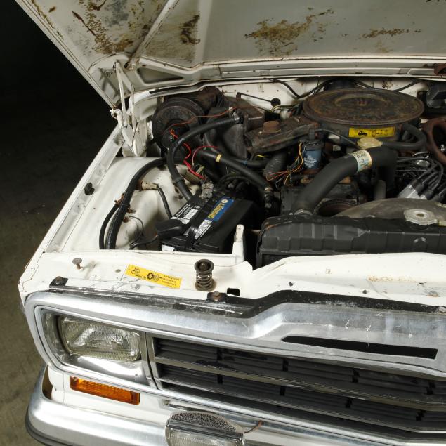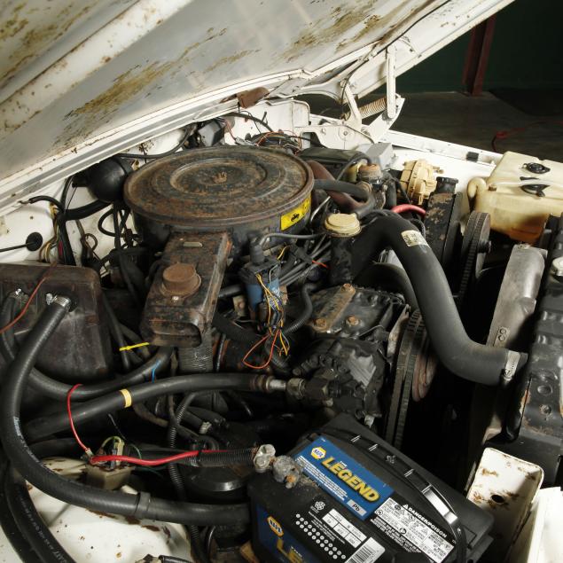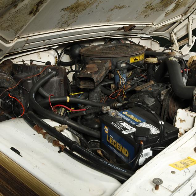 With a 5.9 liter V8 engine with two-barrel carburetor and automatic transmission. Four-wheel drive transfer case is selectable between hi and low gearing with automatic locking hubs.
