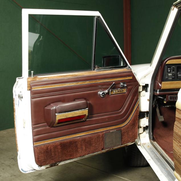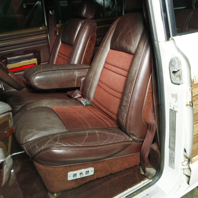 Exterior in White with "Woody" panels. Interior in Burgundy leather and cloth seats. Equipped with a roof rack, power windows, vents and door locks. Rear window is power also with defroster. Cruise control, AM/FM Cassette player and A/C was equipped from the factory.