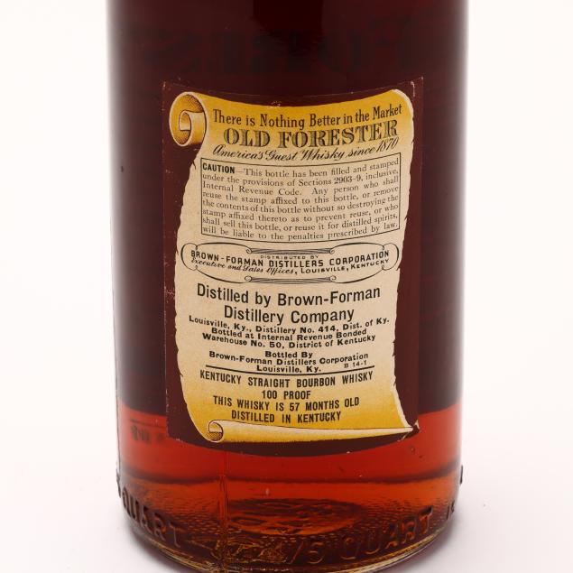 NV, Old Forester Kentucky Straight Bourbon Whiskey, Bottled in Bond, 57 Months Old, Brown-Forman Distillers Corporation Inc., Louisville, KY, 50%, distilled fall 1940, bottled spring 1945, ls, sealed, lscl, scc (1 4/5 Quart)