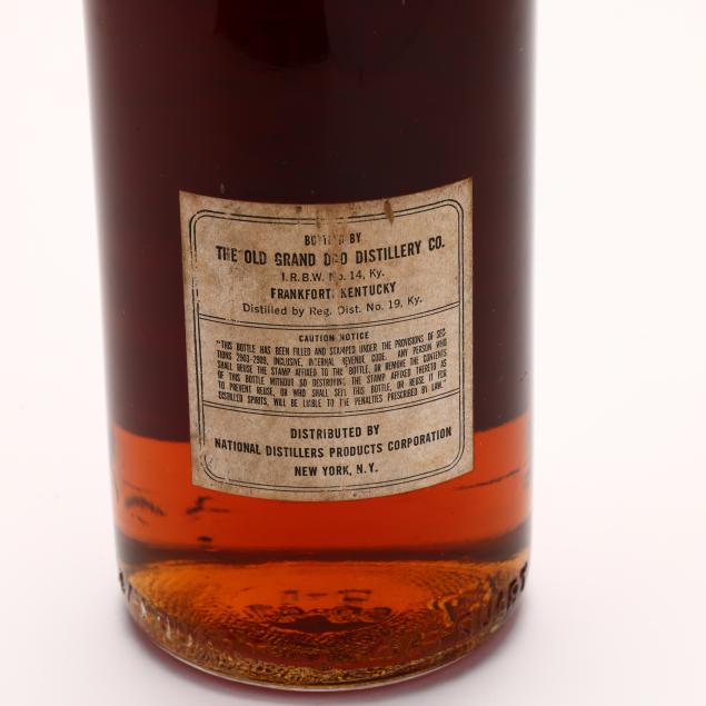 NV, Old Grand-Dad Kentucky Straight Bourbon Whiskey, Bottled in Bond, 7 Years Old, The Old Grand Dad Distillery Company, Frankfort, KY, 50%, made fall 1939, bottled spring 1947, ls, sealed, tax strip/top of cork show corrosion but seal intact (1 4/5 Quart)
