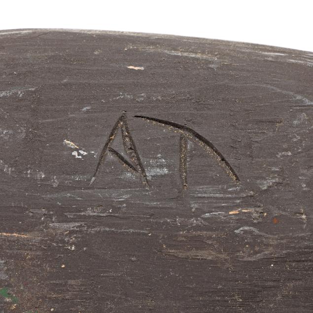 Churches Island, North Carolina, circa 1970, carved and painted wood, incised AT.