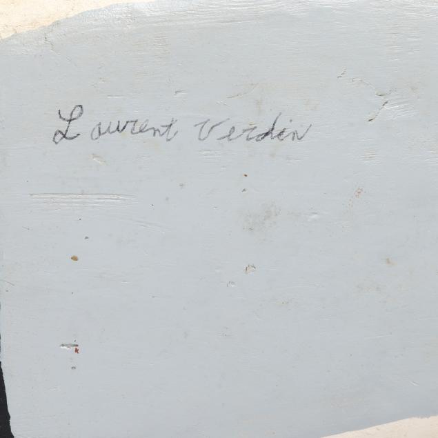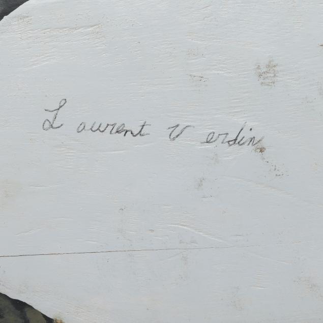 Fala, Louisiana, circa 1970, carved and painted wood, glass eyes, signed.
