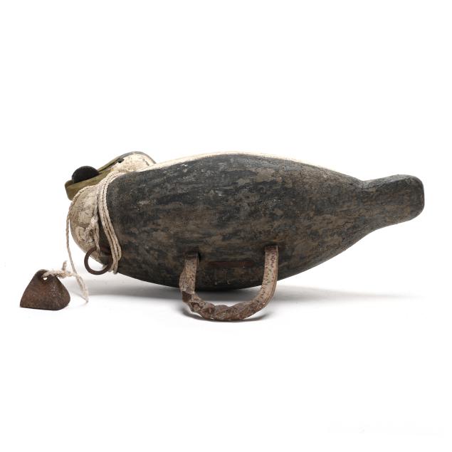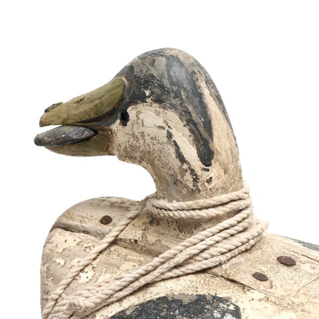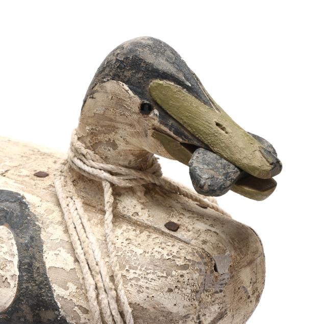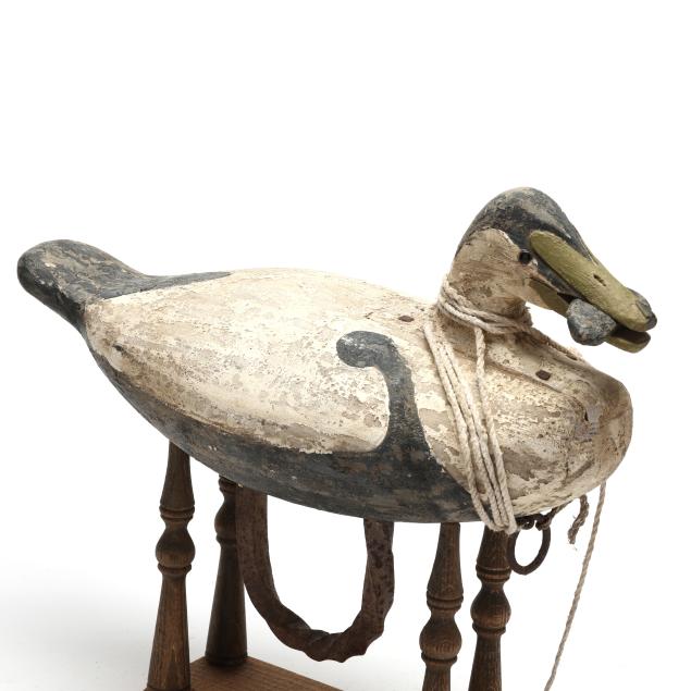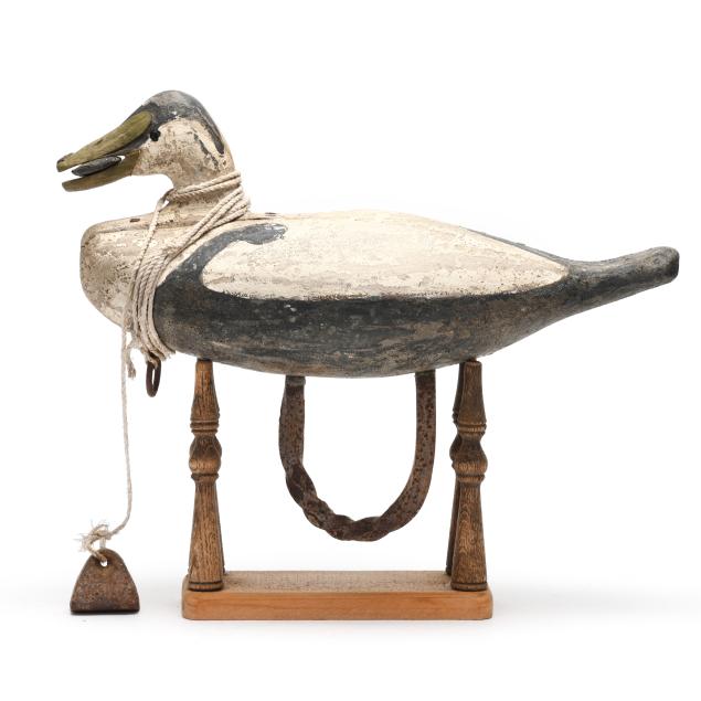Perryville, Maryland, circa 2000, carved and painted wood, iron kill, branded MAINE, copper tag Vernon Bryant Perryville, MD, custom stand conveys.