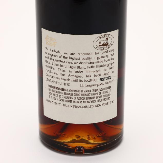 Vintage 1893, Armagnac, Laubade, 40%, bottled September 2003, 3cm, lbsl, wxc, sealed (1 750 ml)