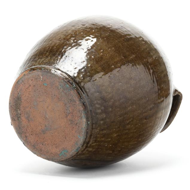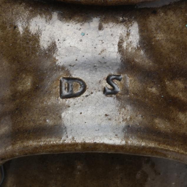 Daniel Seagle is the earliest known Catawba Valley potter and began making his pieces in the early 19th century for neighbors as utilitarian works. Seagle used the alkaline glaze, comprised of wood ash, silica in the form of sand or powdered glass, and clay, with water to control viscosity. It was fired to 2500 degrees Fahrenheit or higher. Seagle’s glossy, runny, greenish glaze has been identified with Catawba Valley pottery ever since, even when other innovations came on the scene.