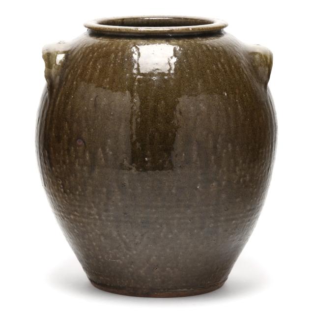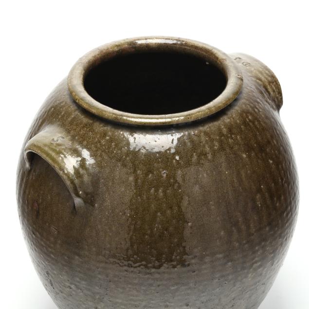 Daniel Seagle is the earliest known Catawba Valley potter and began making his pieces in the early 19th century for neighbors as utilitarian works. Seagle used the alkaline glaze, comprised of wood ash, silica in the form of sand or powdered glass, and clay, with water to control viscosity. It was fired to 2500 degrees Fahrenheit or higher. Seagle’s glossy, runny, greenish glaze has been identified with Catawba Valley pottery ever since, even when other innovations came on the scene.