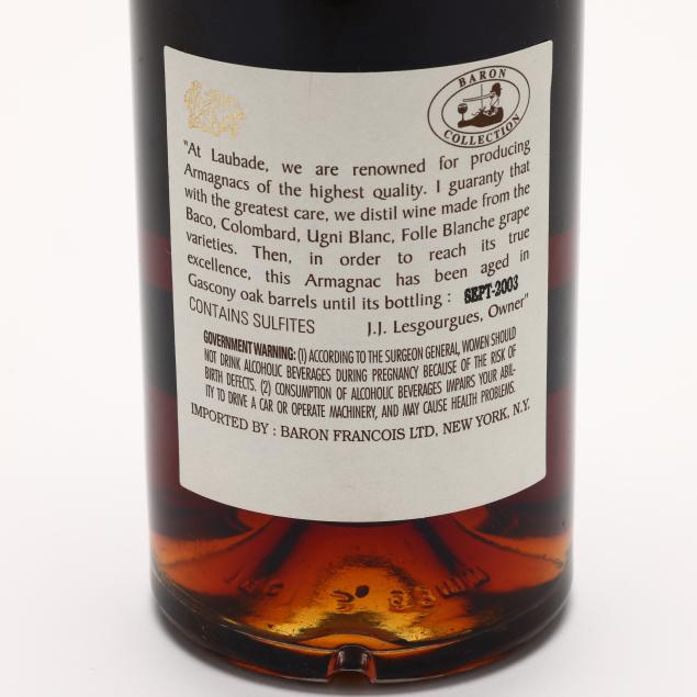 Vintage 1898, Bas Armagnac, Laubade, 40%, bottled September 2003, 4.5cm, wxc, sealed (1 750 ml)