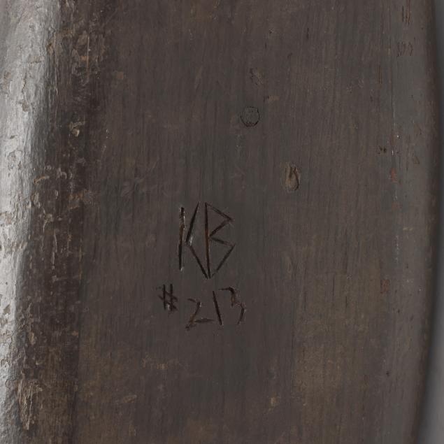 Bordentown, New Jersey, circa 1930, carved and painted wood, glass eyes, incised KB.