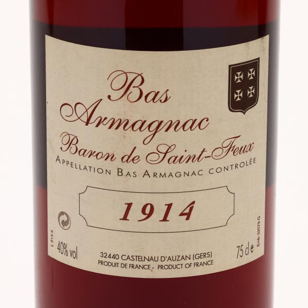 Vintage 1914, Bas Armagnac, Baron de Saint-Feux, 40%, bottled March 2004, 4cm, sealed (1 750 ml)
