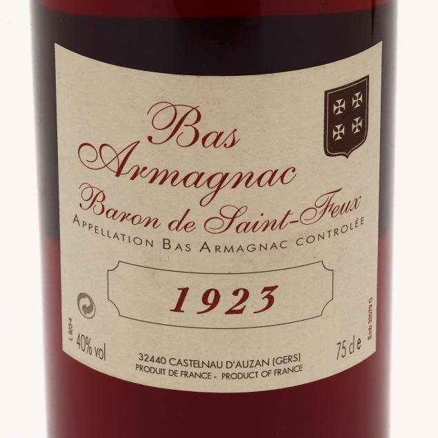 Vintage 1923, Bas Armagnac, Baron de Saint-Feux, 40%, bottled March 2004, 3.5cm, sealed (1 750 ml)