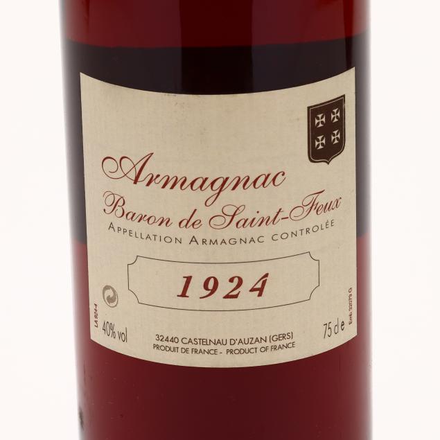 Vintage 1924, Armagnac, Baron de Saint-Feux, 40%, bottled March 2004, 3cm, sealed (1 750 ml)