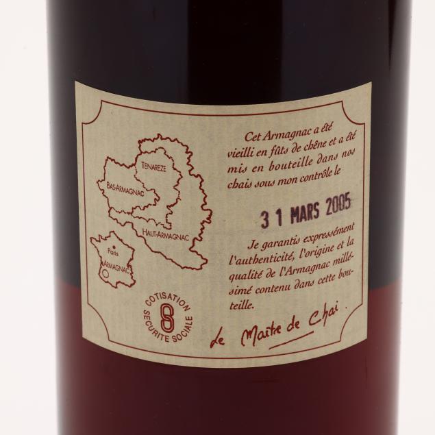 Vintage 1886, Armagnac, Baron de Saint-Feux, 40%, bottled March 2005, 3.5cm, sealed (1 700 ml)