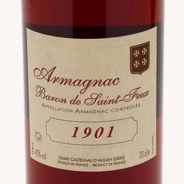 Vintage 1901, Armagnac, Baron de Saint-Feux, 40%, bottled March 2005, 3.5cm, sealed (1 700 ml)