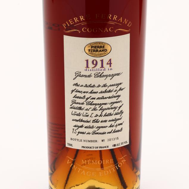 Vintage 1914, Pierre Ferrand Grande Champagne Cognac, Memoire Vintage Edition, 40%, bottled 1989, 4.5cm, wxc, sealed (1 750 ml)