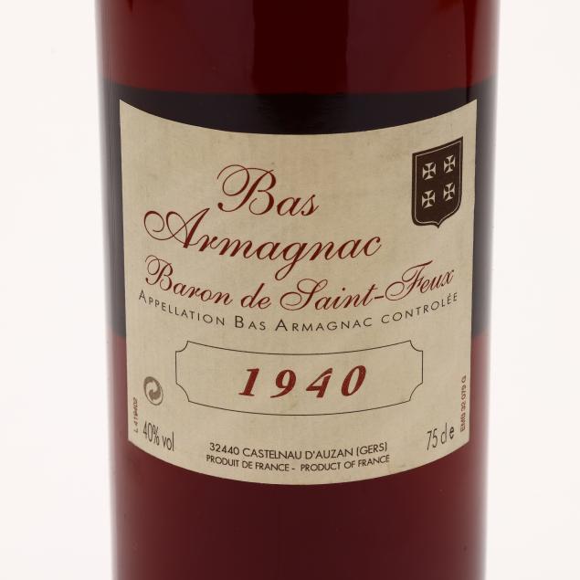 Vintage 1940, Bas Armagnac, Baron de Saint-Feux, 40%, bottled March 2004, 3.5cm, sealed (1 750 ml)