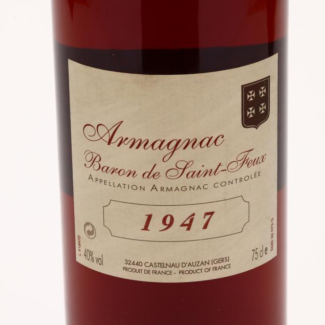 Vintage 1947, Armagnac, Baron de Saint-Feux, 40%, bottled March 2004, 3.5cm, sealed (1 750 ml)