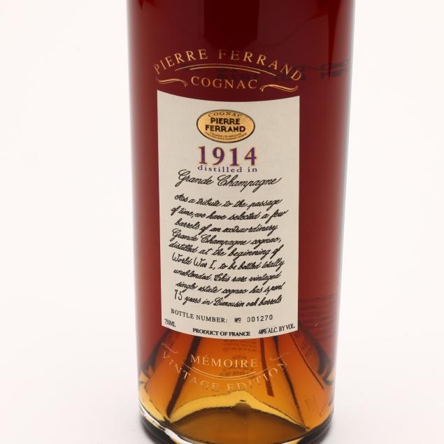 Vintage 1914, Pierre Ferrand Grande Champagne Cognac, Memoire Vintage Edition, 40%, bottled 1989, 4.5cm, damaged/partially missing wax capsule, sealed (1 750 ml)