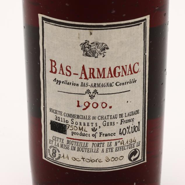 Vintage 1900, Bas Armagnac, Cuvee de l'An 2000, Laubade, 40%, bottled October 2000, 4cm, wxc, sealed (1 750 ml)