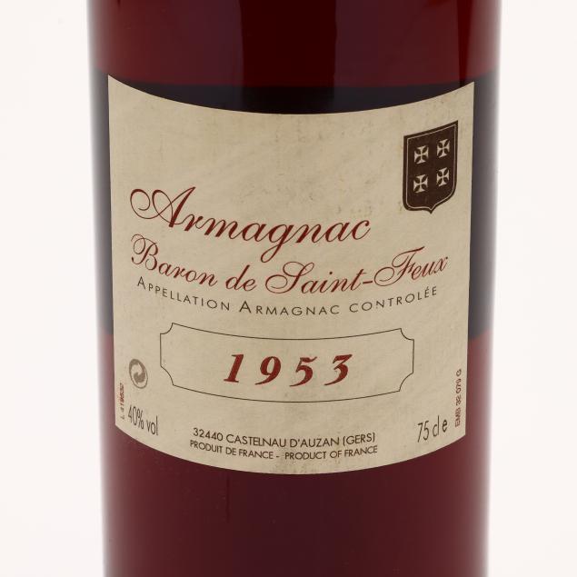 Vintage 1953, Armagnac, Baron de Saint-Feux, 40%, bottled March 2004, 3.5cm, sealed (1 750 ml)