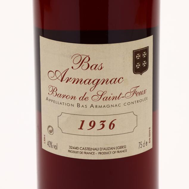 Vintage 1936, Bas Armagnac, Baron de Saint-Feux, 40%, bottled March 2004, 3.5cm, sealed (1 750 ml)
