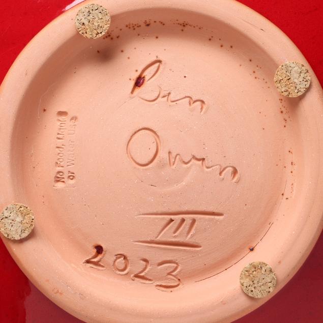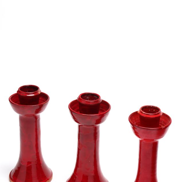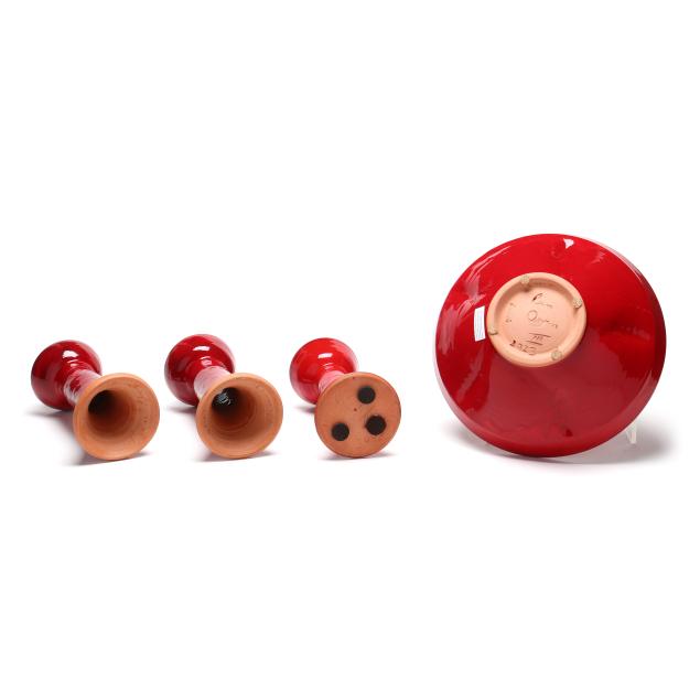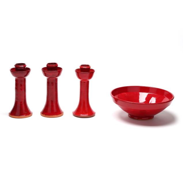 ben-owen-iii-seagrove-nc-b-1968-a-chinese-red-centerpiece-bowl-and-three-candlesticks