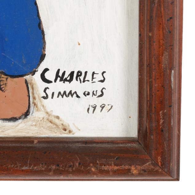 Charles Simmons lived in North Carolina throughout his life. He left school and went on to work for the R.J. Reynolds Tobacco Company for 35 years. Simmons started carving wood in the 1970s and became a dedicated artist once he retired. He painted and carved a large number of works - some of which were later displayed in The Smithsonian American Art Museum.