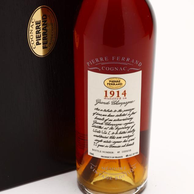 Vintage 1914, Pierre Ferrand Grande Champagne Cognac, Memoire Vintage Edition, 40%, bottled 1989, 5.5cm, crc, ssos, sealed, owc (1 750 ml)