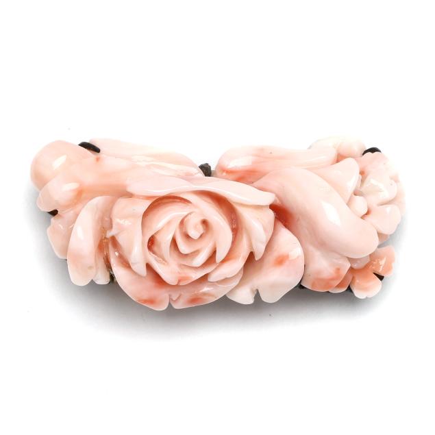 two-vintage-carved-pink-coral-jewelry-items