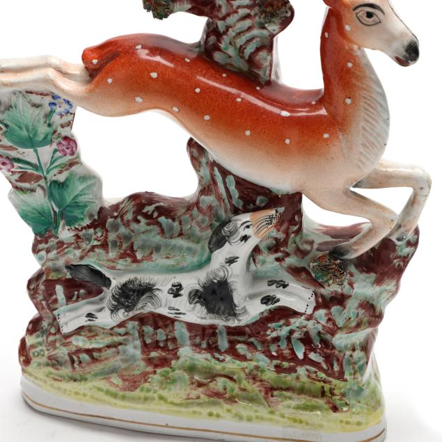 England, second half 19th century, hand-painted and gilt pearlware, with leaping fawn and chasing dog, unmarked.