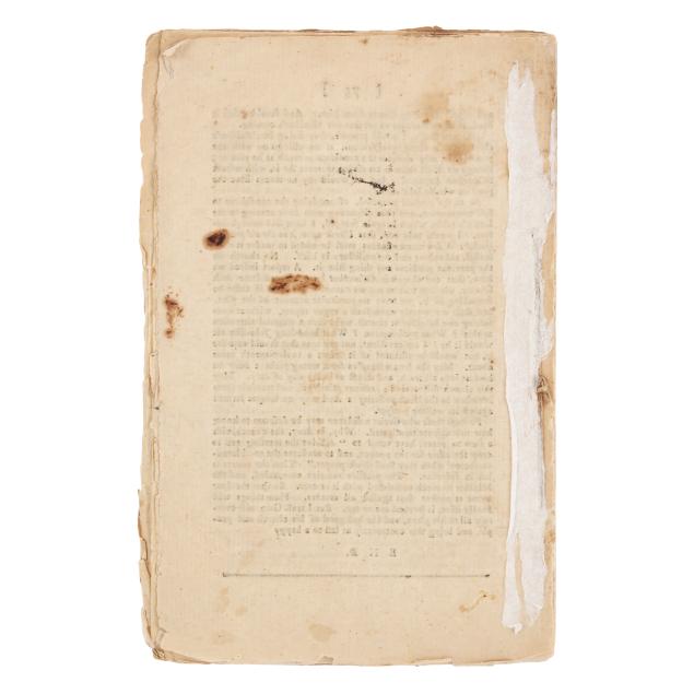 Remnants of old tissue at margins of first and last page; leaves with wear as expected without protective wraps or boards, including fraying with some small chips and tears, with the heaviest wear on first and last leaves (staining and the half-title with a 1-in. tear and corner loss); very light scattered foxing to leaves with an occasional spot of grime, pencil notations, and many early notations and corrections in ink, with text pages overall very clean; corner of half-title blank verso with small typed bio on Cotton tipped in. Good or better, especially for its age.