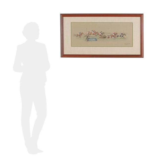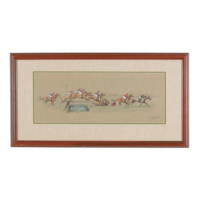 Eugène Pechaubès was a French painter and printmaker best known for his dynamic depictions of racehorses. He first gained recognition for his detailed military scenes, particularly those portraying the Second Empire, before focusing almost entirely on equestrian subjects and the excitement of France’s great racecourses.
