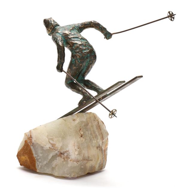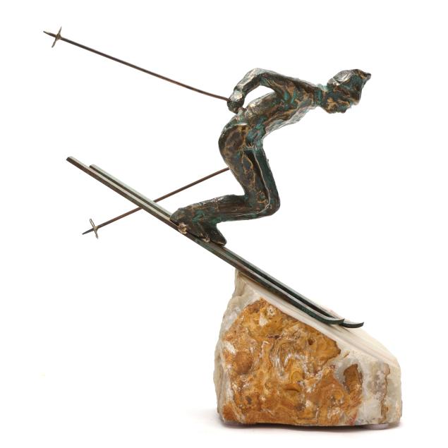 Curtis Jere, Bronze Skier Sculpture with Onyx Base