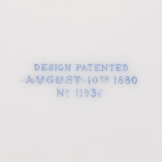 Some of the Hayes designs and forms were made for public sale as well, but on these the pennant mark dated 1879, unique to the White House service, was replaced by a blue 1880 patent mark.