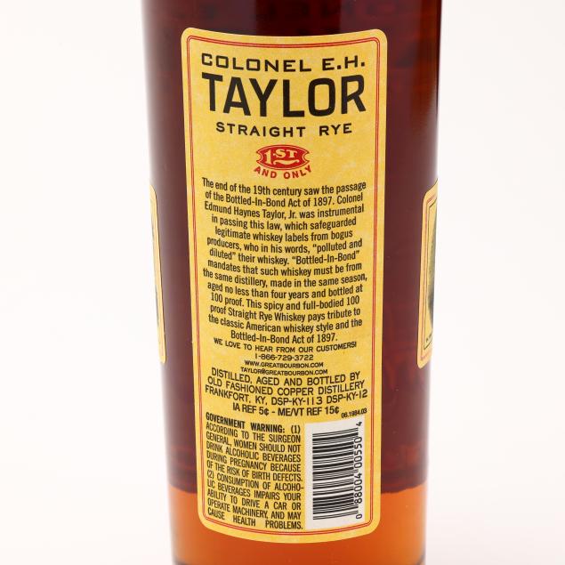 NV, Colonel E.H. Taylor Straight Rye Kentucky Straight Rye Whiskey, Bottled in Bond, Old Fashioned Copper Distillery, Frankfort, KY, 50%, 2017 bottling, 3 into neck, 3 sealed, 3ocb (3 750 ml)