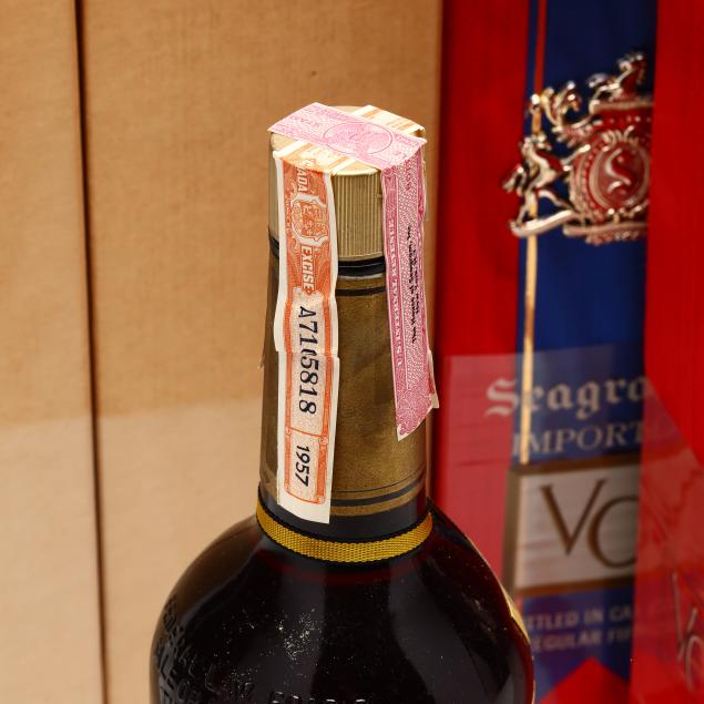 NV, Seagram's V.O. Blended Canadian Whisky, Six Years Old, Joseph E. Seagram & Sons, Limited, Ontario, Canada, 43.4%, 1957 bottling, 7 into neck, 7 sealed, 7ocb (7 4/5 Quart)