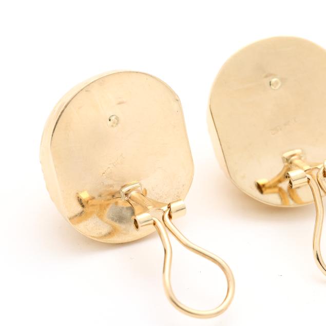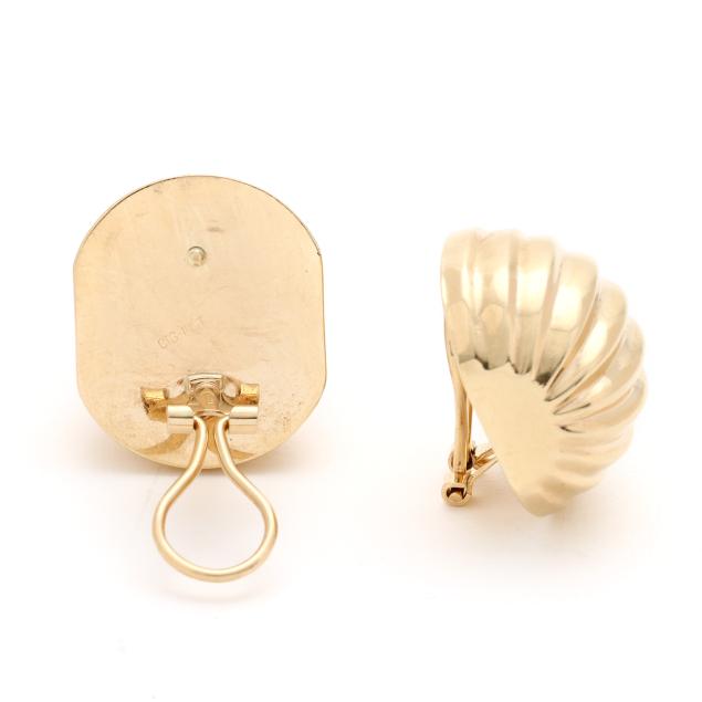 The bombé design earrings with fluted detailing, completed with omega clip backs, stamped 14K.