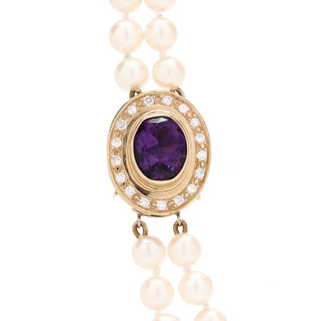double-strand-pearl-necklace-with-gold-amethyst-and-diamond-clasp