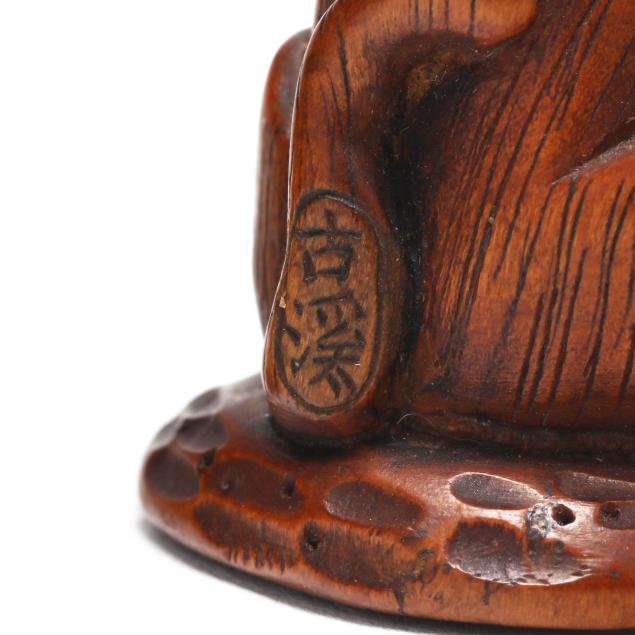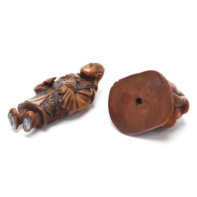 Collection of Michael and Ingrid Kelly, Worldwide Gallery Antiques, Fredericksburg, Virginia Japanese netsuke are miniature carved toggles, traditionally used from the 17th century onward to secure inro and other small containers to the kaku obi of a man's kimono. Often crafted from materials such as ivory, wood, or stag antler, they served both functional and decorative roles, evolving into highly collectible sculptural artworks.