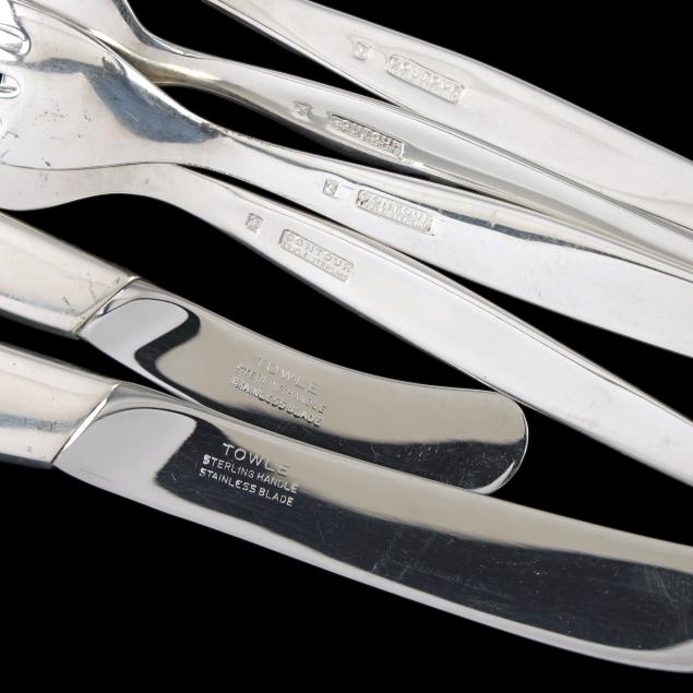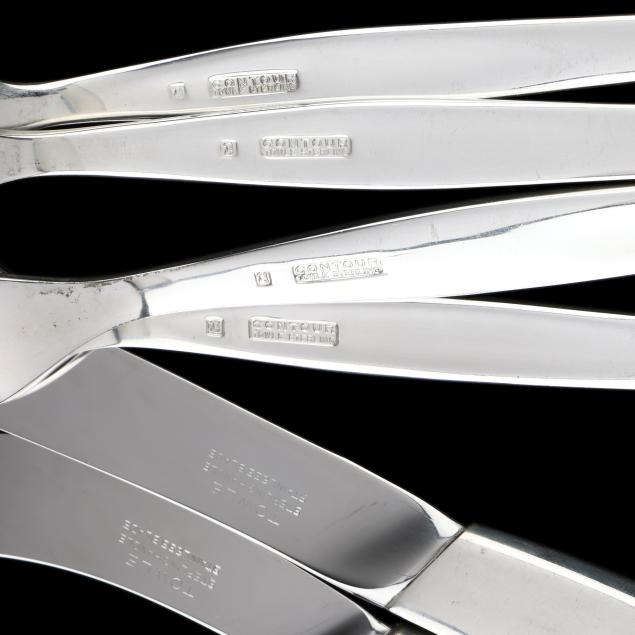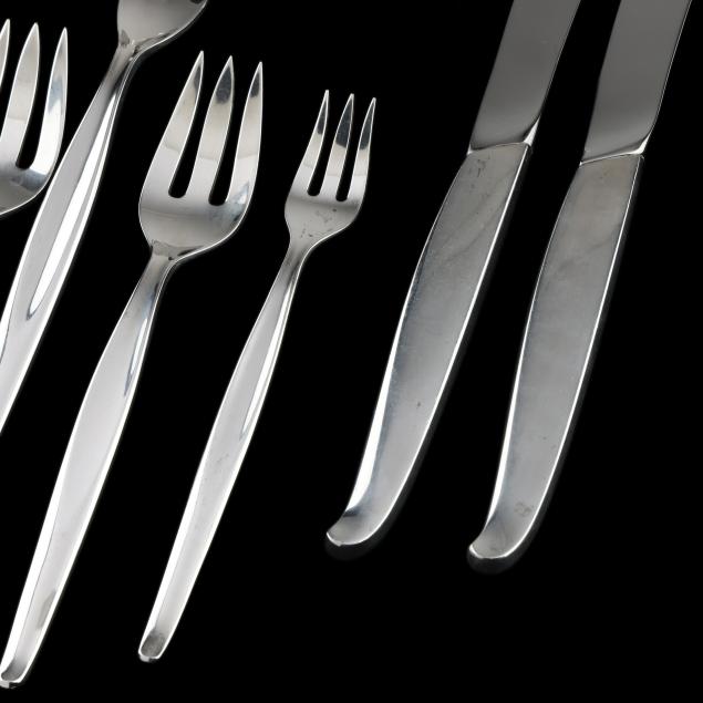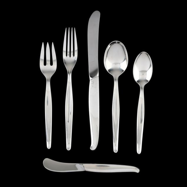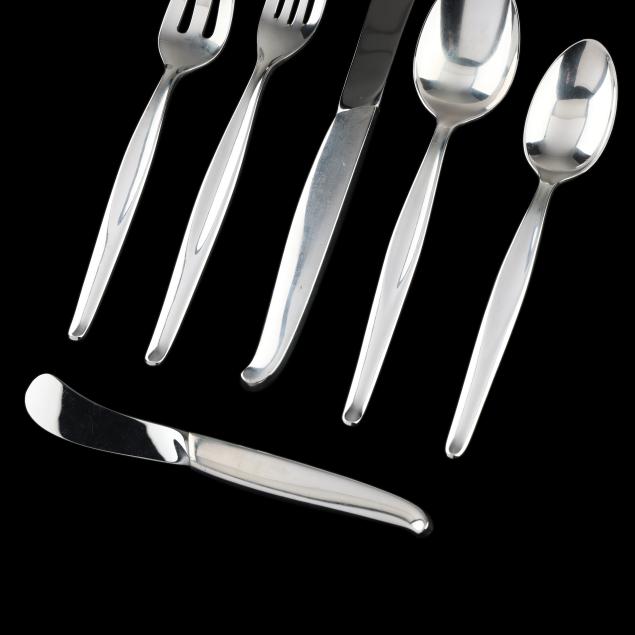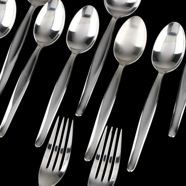 (32) pieces to include: (4) dinner knives (9 in.); (4) dinner forks (7 3/4 in.); (4) salad forks; (8) teaspoons; (4) round bowl soup spoons; (4) oyster forks; and (4) butter spreaders.
