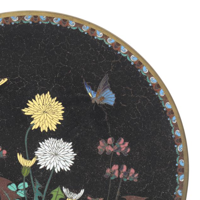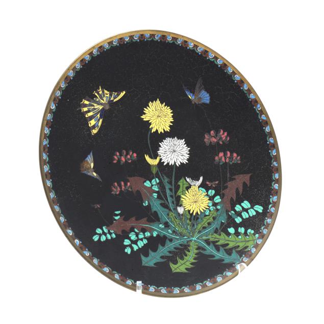 a-japanese-cloisonne-plate-with-butterflies-and-dandelions