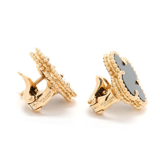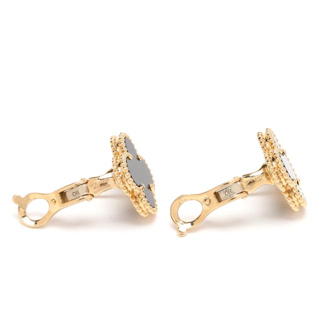 Gold and Black Onyx Alhambra Earrings, Van Cleef and Arpels