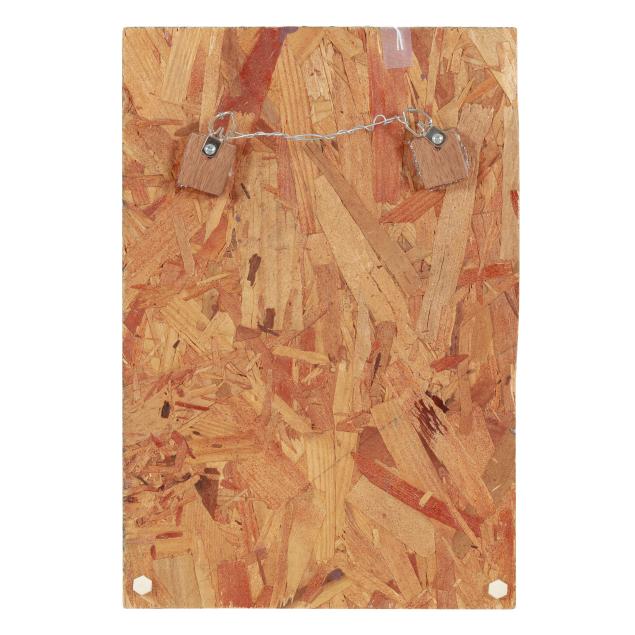 Polychrome paint on board, signed at right edge, titled to left edge, unframed.