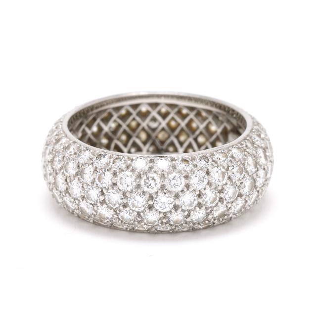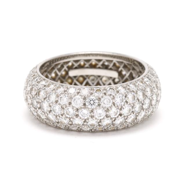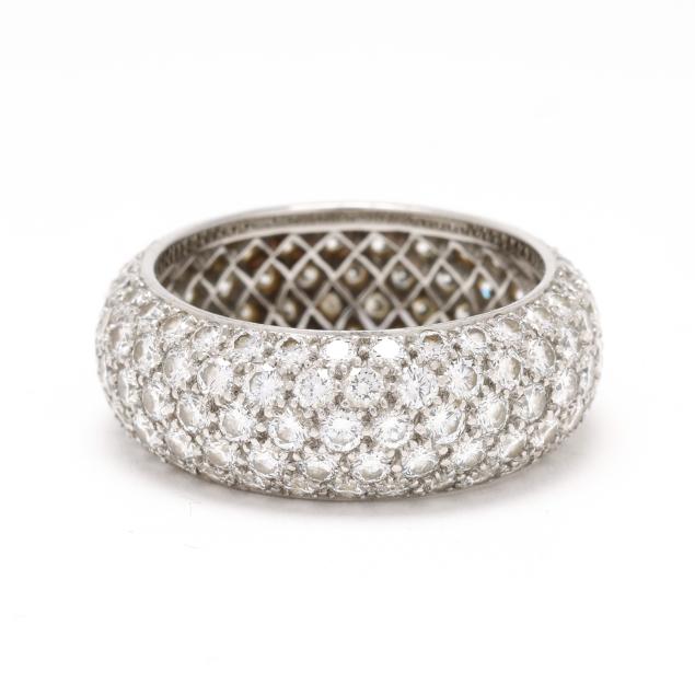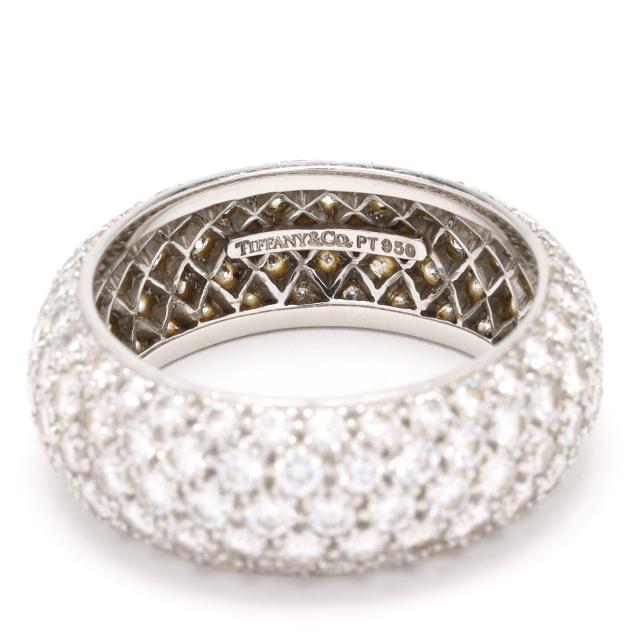 rounded band pavé set with full cut round diamonds weighing approximately 3.75 total carats (F-G color, VVS2-VS1 clarity), stamped Tiffany & Co. PT950.