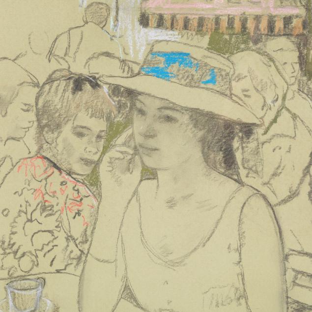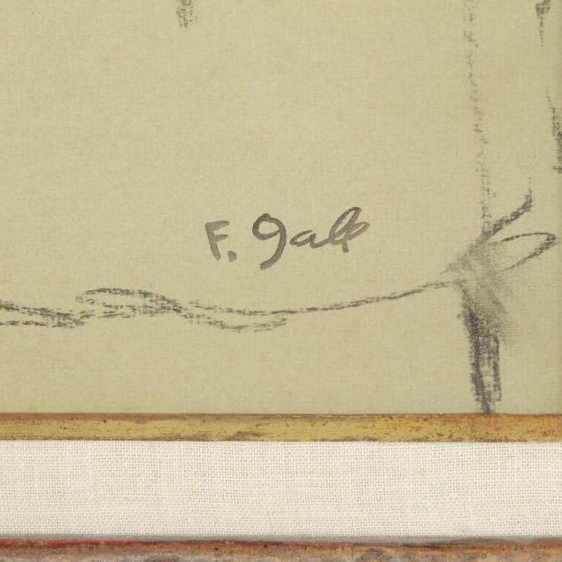 Charcoal and pastel on paper, signed at lower right, framed under glass.