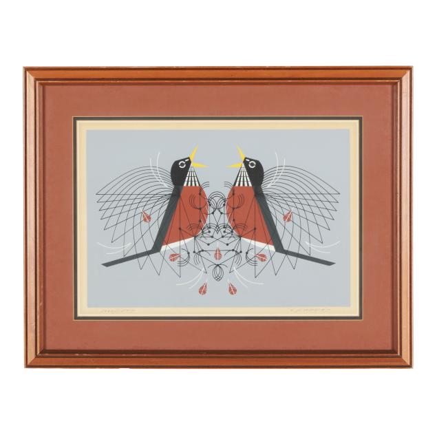 Bluebirds in the Bluegrass with staining to the upper margin, waviness and a crease to the lower edge; Round robin with toning to the sheet; not examined outside the frames.