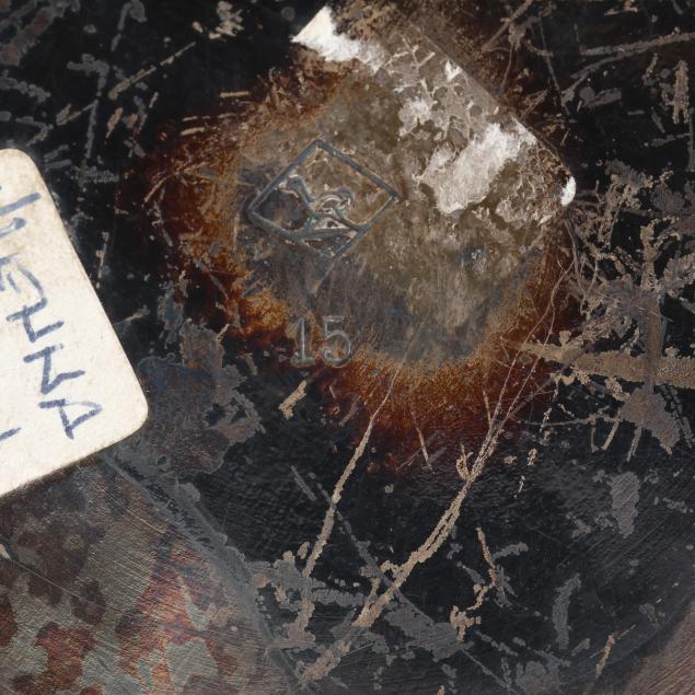 Areas of rubbing, bleed, and surface scratches to plated surfaces; a few small areas of denting.